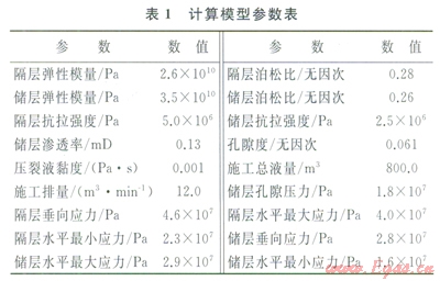 根據西南某地區的部分壓裂井的微地震監測和測井解釋結果,發現該區塊的天然裂縫不發育,壓裂過程中,壓裂裂縫以平面裂縫為主,因此,本計算模型假設壓裂裂縫為平面縫。